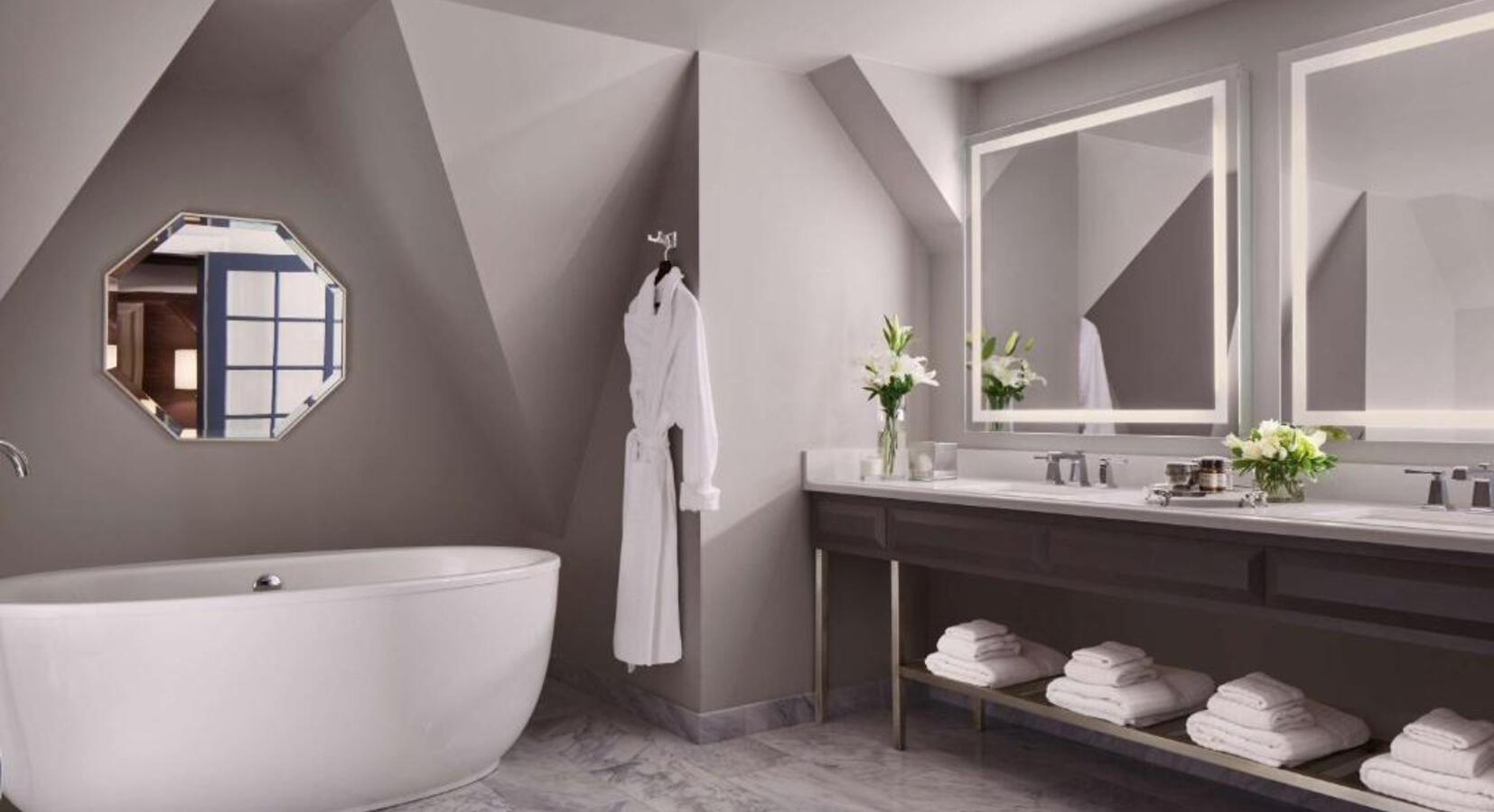 Pet bowls provided for four-legged friends, charges may applyBath robes