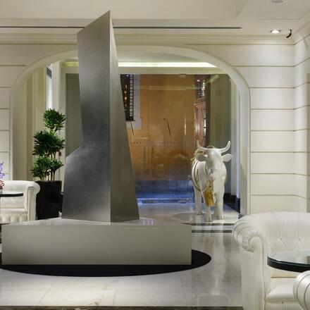 Dieses neue Boutique-Hotel lässt die Grenze zwischen Kunstgalerie und Unterkunft verschwimmen und bietet eine Reihe eleganter Suiten, die zeitgenössische italienische und internationale Künstler ausstellen. In einer ruhigen Straße im Herzen Roms gelegen, nur zehn Gehminuten von der Spanischen Treppe entfernt, ist dieses stilvolle italienische Versteck ein idealer Ausgangspunkt für die Erkundung der Ewigen Stadt. Zeitgenössische Skulpturen und Gemälde schmücken die Hotellobby, in der sich eine elegante Lounge mit Kamin befindet. Die hellen Suiten im Obergeschoss sind intim, mit Sesseln, gemütlichen Teppichen und Bücherregalen, die das Gefühl vermitteln, zu Hause zu sein. Die Galerie setzt sich in den Privaträumen fort, in denen ständig über 100 Werke zeitgenössischer Künstler ausgestellt sind. Paare lieben die romantische Whirlpool-Suite des Hotels, die über eine private Terrasse mit herrlichem Stadtblick verfügt. Machen Sie unbedingt einen Abstecher nach oben ins Acquaroof, dem schicken Dachgarten des Hotels, wo Sie bei einem Cocktail das atemberaubende Stadtpanorama genießen können. Für das Abendessen sollten Sie einen Tisch im mit einem Michelin-Stern ausgezeichneten Acquolina reservieren, dem hoteleigenen Restaurant für frische Meeresfrüchte. Für einen zwangloseren Abend können Sie sich in die gemütliche Lounge-Bar des Hotels zurückziehen. Ein stilvoller Aufenthalt im Zentrum der Stadt.
