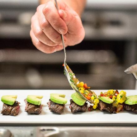 Steak & Bar serves contemporary American cuisine from locally sourced seafood and vegetables to steaksRoof terrace