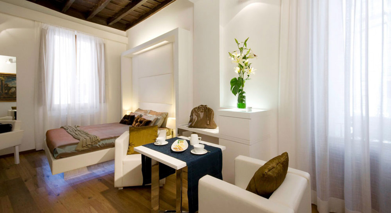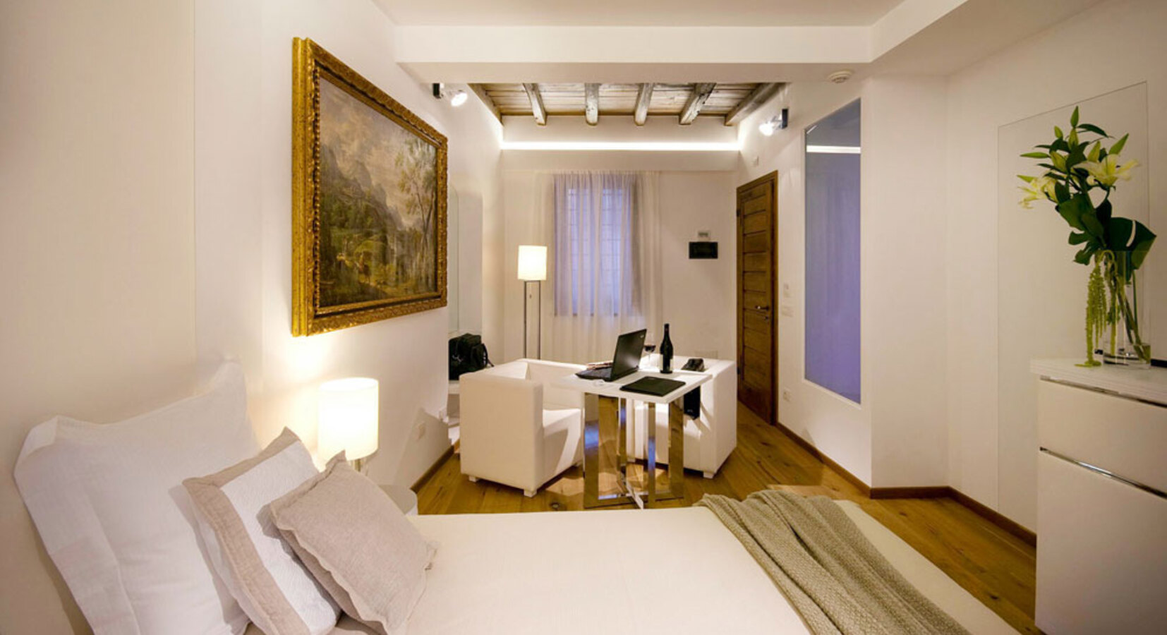 Séjourner dans l'une de ces suites, c'est un peu comme avoir son propre studio à Rome, et un studio très élégant. Bien sûr, vous devez vous débrouiller tout seul pour les dîners et les divertissements, mais cette indépendance, n'est-ce pas plus agréable ? Les six suites situées dans une maison aristocratique affichent un style contemporain avec des murs blanchis, des salles de bains en verre et des meubles en cuir blanc. Le contraste avec les plafonds à poutres apparentes, les parquets et les peintures à l'huile est tout à fait charmant. Un endroit adulte pour les groupes d'amis ou les couples.