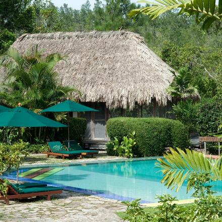 As you ascend into the uplands of Belize the landscape changes from dense tropical vegetation to pine forest, and the temperature cools as you enter this beautiful reserve of rivers, pools and waterfalls. 'Hidden Valley' is in an amazing location at 2000 feet above sea level (the altitude provides coolness and a lack of mosquitoes over the plain below) in the heart of a private 7000 acre estate which itself is part of the 100,000 acre Mountain Pine Ridge nature reserve. Hidden Valley Inn has unique and exclusive access to over 90 miles of well marked hiking trails through brush & forest to spectacular lookouts. Tramp over rustic wooden walkways & bridges to waterfalls and inviting swimming spots with crystal clear water. You can drive around or walk alone, or be accompanied by one of the many guides who can give you a more detailed explanation of the landscape, the flora & fauna. Dining is in the lovely Lodge which has been delightfully converted from a former estate owner's residence - there is still a colonial plantation feel about the place. Smoky fires and wood panelled walls create the ambience of an old hunting lodge. Swimming pool & Yoga platforms are close by, plus there's a hot tub for some relaxation and star gazing after a day in the jungle. Open fires in the lodge bedrooms create a wonderful warm & cozy atmosphere with baskets of logs and kindling provided at your front door on a daily basis. Hidden Valley is an all encompassing experience - it's certainly not somewhere to simply arrive and flop, that would be missing the point entirely!