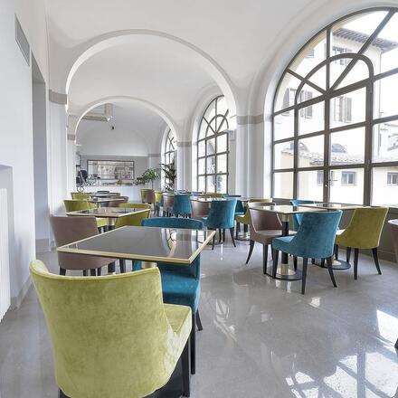 Das Horto Convento liegt auf der Südseite des Arno, nicht weit vom Zentrum der Stadt entfernt, aber dennoch in der Nähe der wichtigsten Sehenswürdigkeiten. Der Vorteil seiner Lage - inmitten eines Geländes mit Garten und kleiner Terrasse - ist, dass es vom Lärm des Stadtzentrums abgeschirmt ist und somit einen ruhigeren Aufenthalt bietet als die Hotels in der Innenstadt. Die Hoteliers haben versucht, die klassische Eleganz des florentinischen Stils mit einer modernen Atmosphäre zu verbinden; die Art-Déco-Inneneinrichtung lässt viel Licht herein, während die Palette von Grau- und Weißtönen in den Zimmern mit kräftigen Farbtupfern aufgelockert wird. In den Bädern wird Marmor bevorzugt, aber es gibt keine vergoldeten Kanten - eine Wohltat nach einem Tag Sightseeing im barocken Florenz. Das Mobiliar wurde von dem Designstudio Studio Casa Rex Florence aus der Region bezogen. Für die Gäste gibt es einen hellen Frühstücksraum mit Blick auf den Garten, in dem ein gutes Buffet angeboten wird. Bei schönem Wetter kann man sogar im Freien essen, auf einer bescheidenen Gartenterrasse, die zum Essen im Freien einlädt. Die von zwei Säulen eingerahmte Hotelbar mit ihrem Art-déco-Relief an der Decke ist elegant, aber unaufdringlich. Insgesamt ein schickes neues Boutique-Hotel.