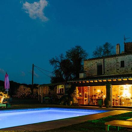 “Two medieval Catalan farmhouses renovated with romance in mind. Gaze over the Mediterranean landscape, swim in the nearby beaches of the Costa Brava, or simply hibernate in the luxury of the hotel - in the gourmet Theatre restaurant, in the sleek interiors, or at the swimming pool.”