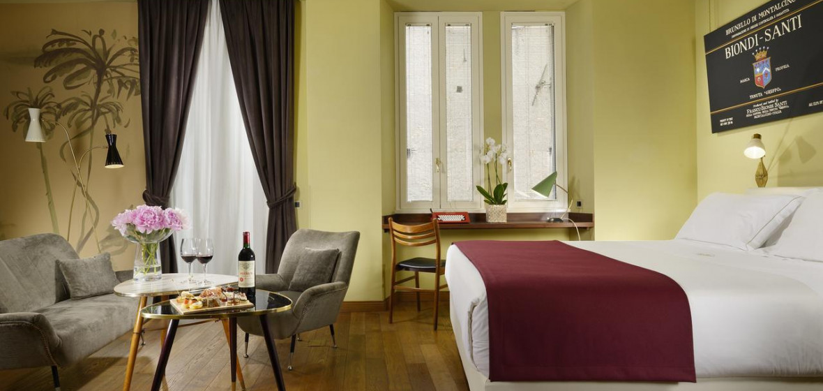 Dieses Boutique-Hotel liegt in einer der schönsten und exklusivsten Gegenden im Zentrum Roms; nur einen Steinwurf vom Vatikan und dem Pantheon entfernt, ist die unmittelbare Umgebung des Hotels eine ruhige Wohnstraße voller historischer Gebäude und Antiquitätengeschäfte. Das Hotelpersonal besteht ausschließlich aus professionellen Sommeliers, was das Hotel zu einem perfekten Ort für Weinliebhaber macht. Der historische Palazzo, in dem das Hotel untergebracht ist, wurde renoviert und bietet moderne, stilvolle Zimmer mit einer hochwertigen Ausstattung. Die Zusammenarbeit des Hotels mit dem Künstler Andrea Ferolla führte zu den einzigartigen Fresken und Illustrationen, die die Suiten des Hotels schmücken. Der Schwerpunkt des Hotels auf Wein setzt sich in den Suiten fort, mit maßgeschneiderten Weinkellern in jedem Zimmer - ein luxuriöser Touch. Die Charade-Bar ist die unerwartete Krönung des Hotels. Sanftes Licht unterstreicht die Samtsessel und Chesterfield-Sofas in diesem exklusiven Refugium. Mit einer Auswahl von mehr als 1.500 Marken wird es Ihnen hier an nichts fehlen. Eine Zigarrenlounge und eine ausgezeichnete Auswahl an Whiskeys runden das Erlebnis ab. Ein elegantes Hotel.