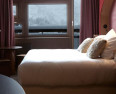 "Designer Jocelyne Sibuet has put her own spin on 1960s fabrics, choosing nobbly textures and pale colours, predominantly silver and grey, for wall coverings, bedsteads and curtains."