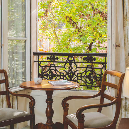 Madame La Foch’s family-run hotel could be in a quiet provincial town, set back as it is in a leafy courtyard garden where you can breakfast in summer. In traditional style, there is no sitting room and bedroom walls tend to be immodestly thin, but the place exudes an old-fashioned charm, with flowery wallpaper and lace bedspreads. Fifteen of the rooms are newer, done in toile de jouey with fresher bathrooms.