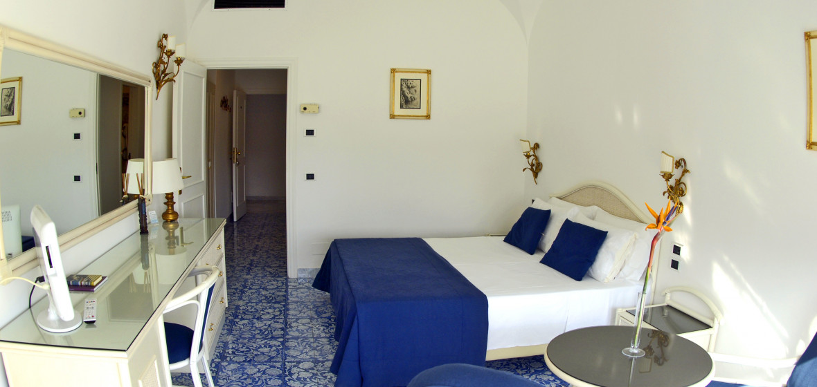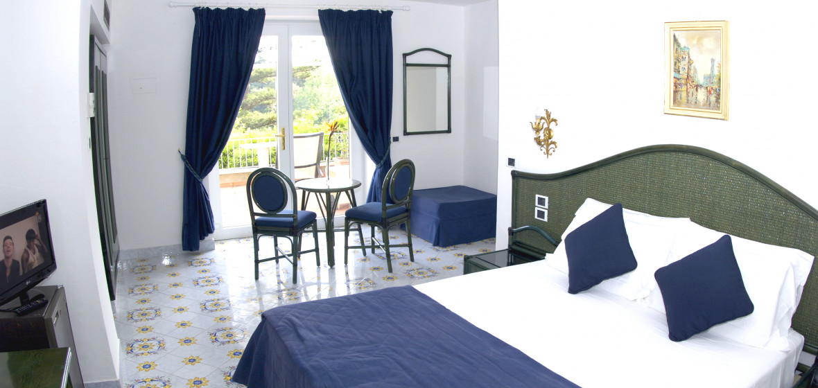 “Tasteful traditional style in this gorgeous Mediterranean pensione. All-white bedrooms with blue majolica-tiled floors and bedspreads and spectacular sea views from the balconies. An attractive kidney-shaped pool and large terrace with loungers. A tranquil and romantic spot. ”