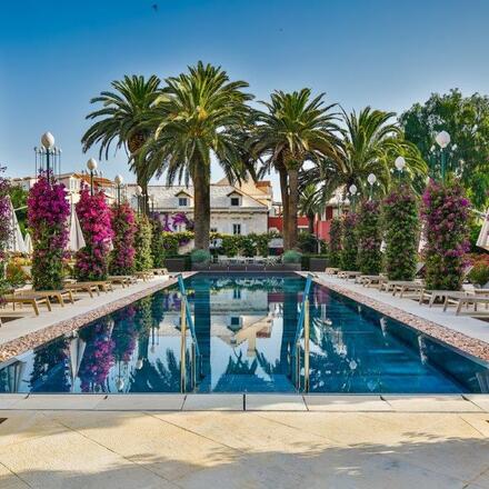 An exceptional heritage hotel set in a garden full of Mediterranean trees and flowers and steps away from the seafront. Stylish rooms, suites and maisonettes are tastefully decorated, and a full range of first-rate facilities include a heated pool, private beach, spa and restaurant.