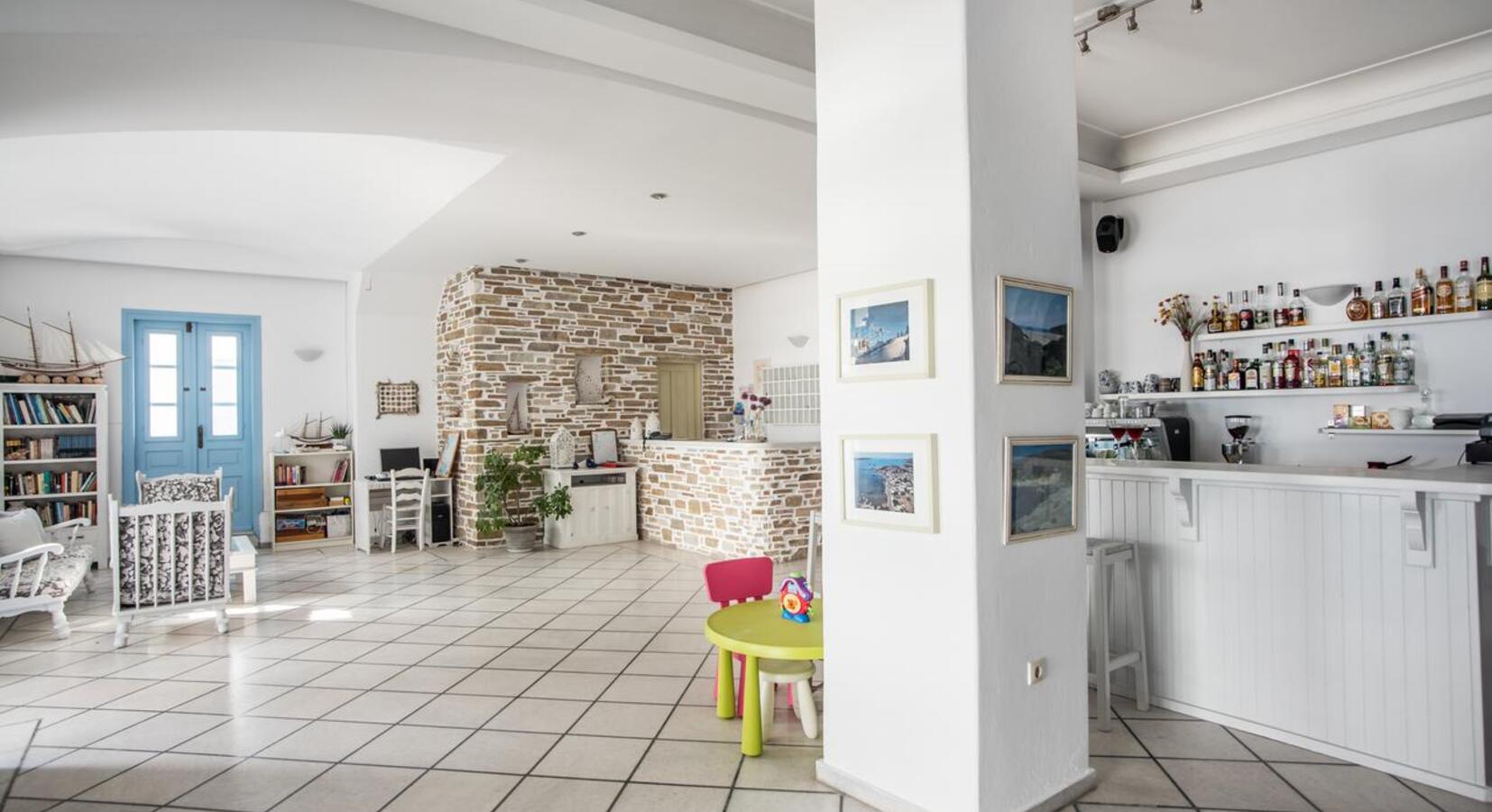 “This pretty hotel is located on the seafront in Antiparos in a traditional Cycladic property. Rooms are bright and simply dressed, with white linens and tiled floors; the best rooms have a balcony with sea views. Sunbathe on the terrace before dinner at the seaside restaurant. A charming hotel.”