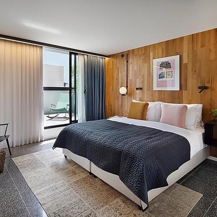 This tangerine-colored Bauhaus building, situated smack-bang in Tel Aviv’s centre, merges a historic past with its status today as a design-led boutique bolthole. Step through the Hotel Montefiore’s front door and into a bustling bar and restaurant packed with the city’s coolest creatives. Grab a menu and perch yourself along the long, curving bar – the food is a sophisticated fusion of French and Vietnamese cuisine, changes weekly and relies upon local ingredients. The first and second floors house only 12 bedrooms, each one oozing style. From the floor-to-ceiling library in each room (boasting an eclectic mix of travel books, high-brow literature and trashy beach reads) to the breezy white curtains and leather armchair, these are bedrooms that beg for lazy mornings. Top tip: book a room with a balcony to enjoy an al fresco breakfast.