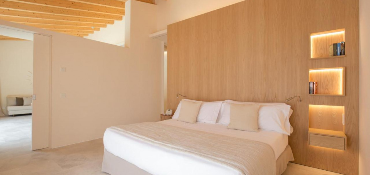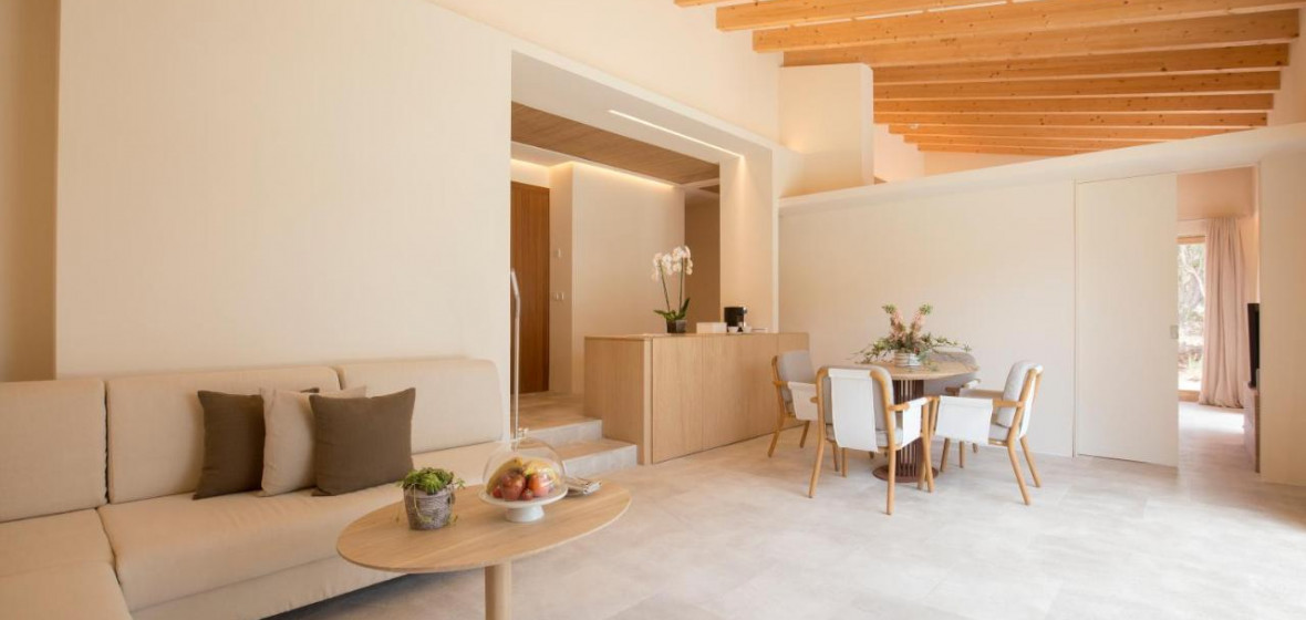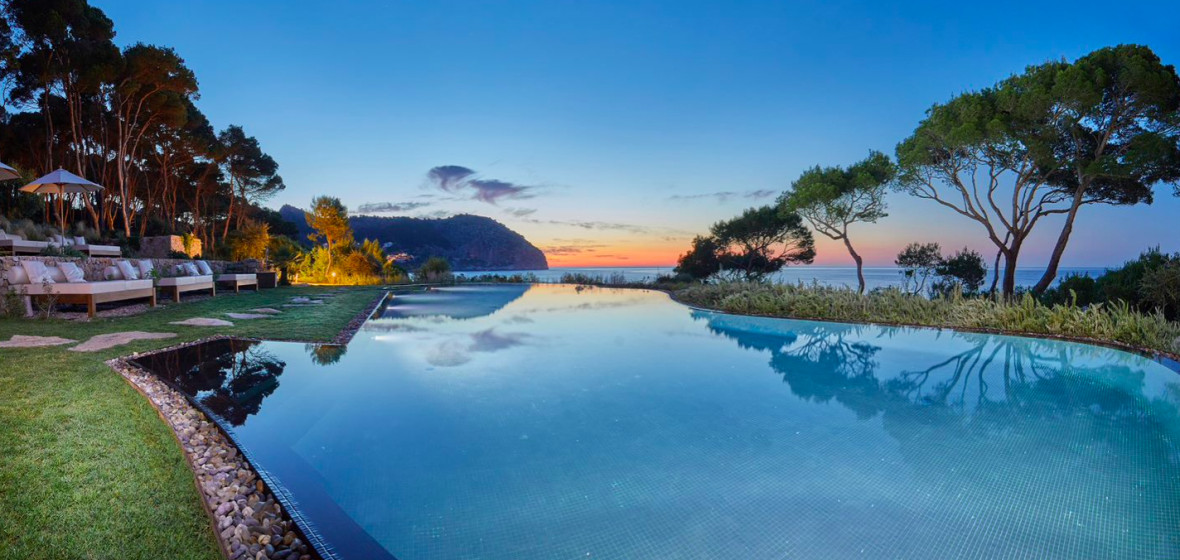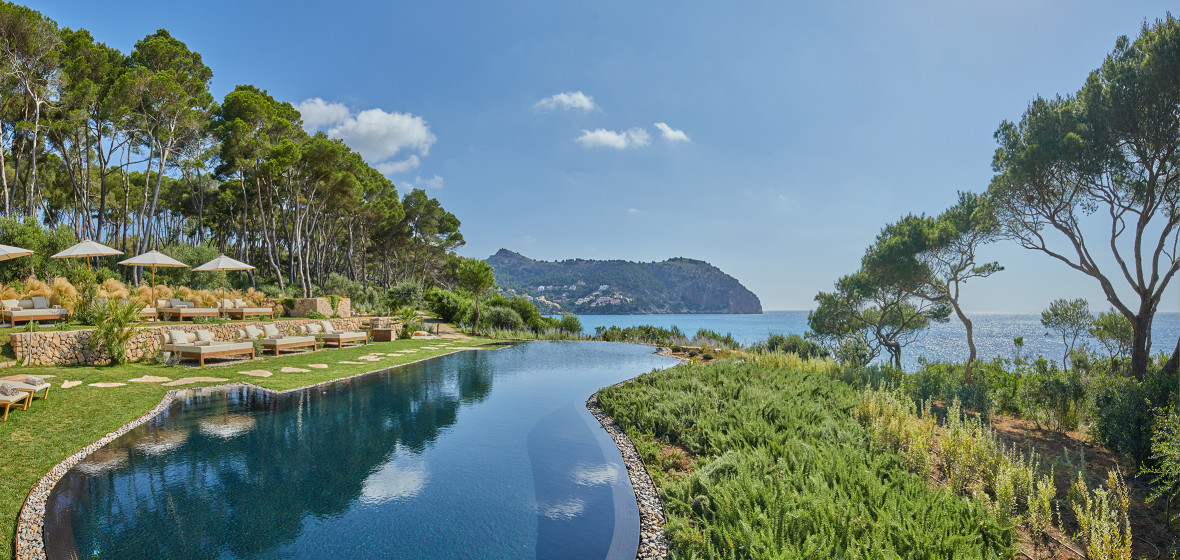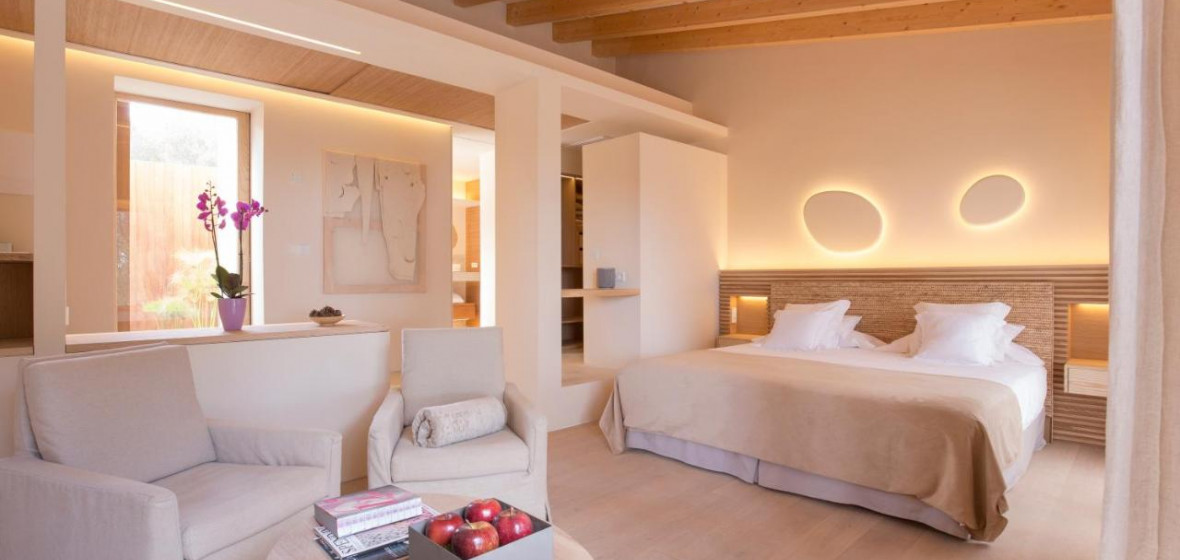 Sublime, uber stylish 5 star luxury retreat is immersed in nature with 2 infinity pools (voted by Mr & Mrs Smith as one of 10 best infinity pools in the world) and a private beach overlooking the Mediterranean. Private bungalows using natural materials and incorporating hi tech features, offers minimalism and absolute peace. It's next door to big sister Can Simonetta if you want a change of scene during your stay. Good for couples and solo guests (adults only) who favour a hip, sophisticated hotel with delicious food (Marc Fosh, Michelin starred, is the executive chef) and faultless service. Individual staggered natural stone bungalows each with a private courtyard and terrace, are integrated into the heavenly landscape punctuated with pine and olive trees and wild grasses overlooking the glistening sea. Using the theme of nature, all natural materials are used - hessian lamps with coiled rope bases, bamboo ceilings and blinds, stone or pebble floors, wooden doors, tree trunk tables, woven string headboards backing super kingsize beds and wafty linen curtains. The lateral architectural design of the buildings cleverly emphasise a unique sense of expansive space and openness. Guest houses have a wonderful cocoon-like feel with well designed bathrooms fitted with double basins, large designer oval bath tubs, indoor and outdoor showers. The 50-strong team of staff go the extra mile to help. An idyllic place to unplug and disconnect. Unforgettable.