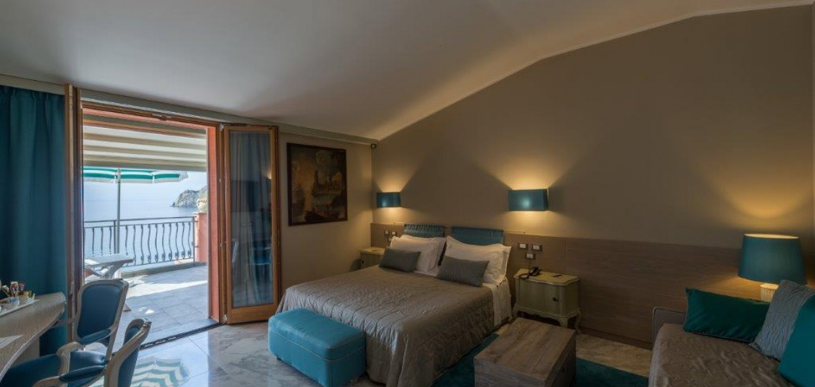 Which are your most popular room types, and why? The sea view Double room for the spectacular sea view. Why do people love staying in your hotel? Nestled in incomparable scenery Hotel Porta Roca gives our guests the impression of sailing above by the sea accompanied by fragrant flowers and the sounds of birds chirping. It is surrounded by the pristine nature of the Cinque Terre and its lush Mediterranean vegetation overlooking the bay of Monterosso. This view of crystal clear waters and sheer cliffs makes it a paradise beyond compare.. At every turn you will see our taste in and appreciation for beautiful things. Every corner is modernly furnished with antique furniture of rare beauty and great value giving the impression of staying in an elegant private villa. Our sea view infinity pool is unique in the Cinque Terre, overlooking a small sheltered bay, surrounded by greenery and vineyards. To match up as naturally as possible to the context that surrounds it, was built in a secluded location on the side of a hill in terraces towards the sea, built as a dry-stone walls of the Cinque Terre using the stones of a local quarry with sea water, creating for those who is immersed, a game of continuity with the horizon between sea and sky, in a landscape of rare beauty.