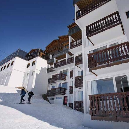 Terrasse attrayante avec tables donnant sur les pistes et la stationChambres avec balcon/terrasse