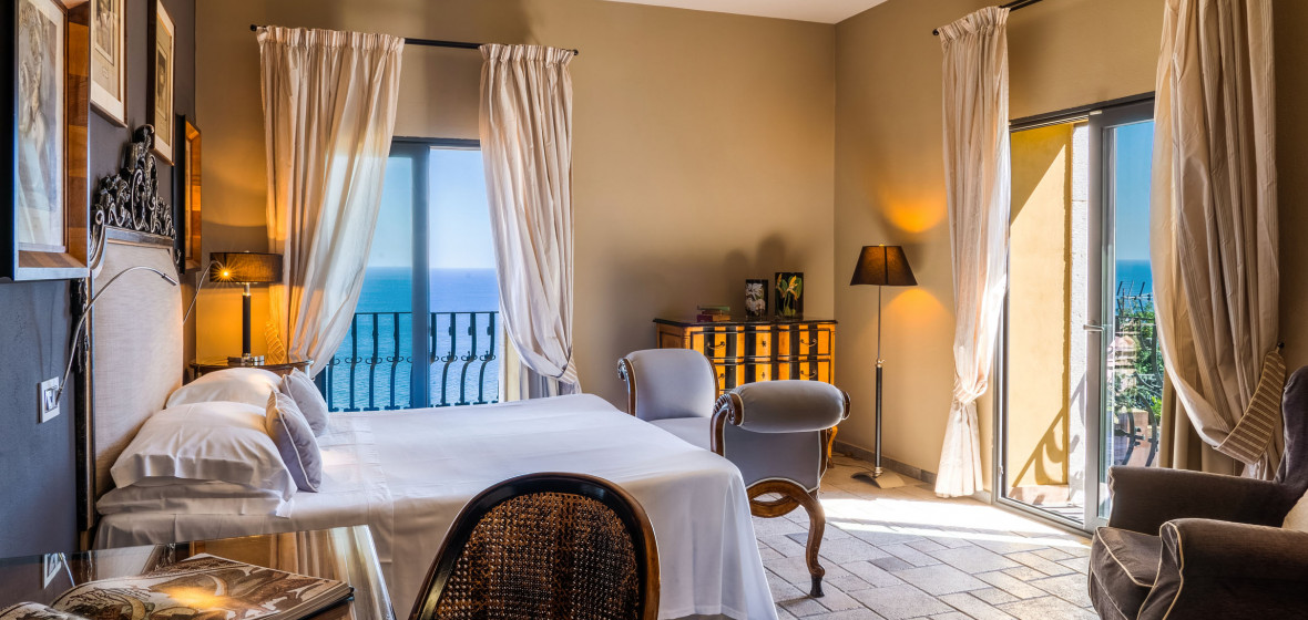 Quite simply, Hotel Villa Carlotta is one of the best places to stay in Taormina. With far reaching views across the magical Sicilian coastline, it's a romantic hideaway which delivers exceptional service from a team of staff that have been here for years. Discerning travellers will appreciate the style and personality of this award-winning hotel with its relaxed atmosphere and elegant décor. You'll leave your heart at Hotel Villa Carlotta as it gently wins you over with its attention to detail, colourful interiors and personal service. There are twenty-three rooms, four luxury apartments and a luxury villa, and are as individual as the guests. Period pieces, modern classics and a Sicilian colour palette, create a chic and relaxing atmosphere. Almost all of the en-suite rooms have a balcony or terrace with sea views and families can stay in interconnecting rooms. Walking distance from Taormina's historic centre and just a six minute complimentary shuttle ride from the beach, Hotel Villa Carlotta is a great choice for culture vultures or sun seekers. The pool is set within the hotel's lush gardens and is flanked by a pool bar which serves drinks and snacks throughout the day. Breakfast on the rooftop restaurant is a feast fit for a king with homemade Sicilian delicacies including cakes, frittatas and freshly made daily specials. The lunch and à la carte dinner menu also feature authentic Sicilian dishes. Candlelit dinner here is a very romantic, memorable experience. The panoramic terrace is an ideal spot to sip a house cocktail or Sicilian aperitif. You'll feel like a guest in a private house owned and managed by local and passionate hosts who strive to give you the very best Sicilian experience.