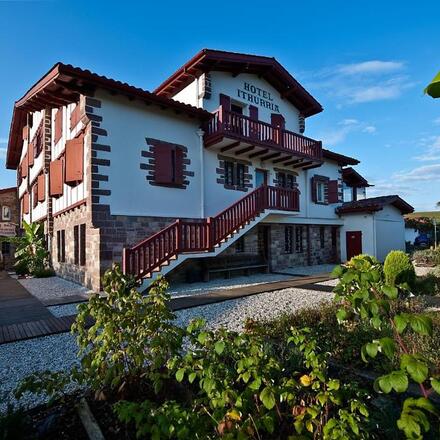 Another lovely Basque village and another three-generation family hotel, this one distinguished by its Michelin-starred, market fresh food. Xavier and Stéphane took over from their parents, who had in turn taken over from their mother’s parents, Marie Louise and Emile Ithurria, who had bought the 1657 red and white farmhouse in 1962. The spacious dining room, adorned by huge gleaming bottles of Armagnac, sets the tone and is the heart of the hotel (there is also a simple bistro for table d’hôte lunches). Bedrooms are straightforward, clean and simple, with comfortable beds covered in crisp white linen. Best are the family apartments sleeping five. There’s also an attractive outdoor swimming pool.
