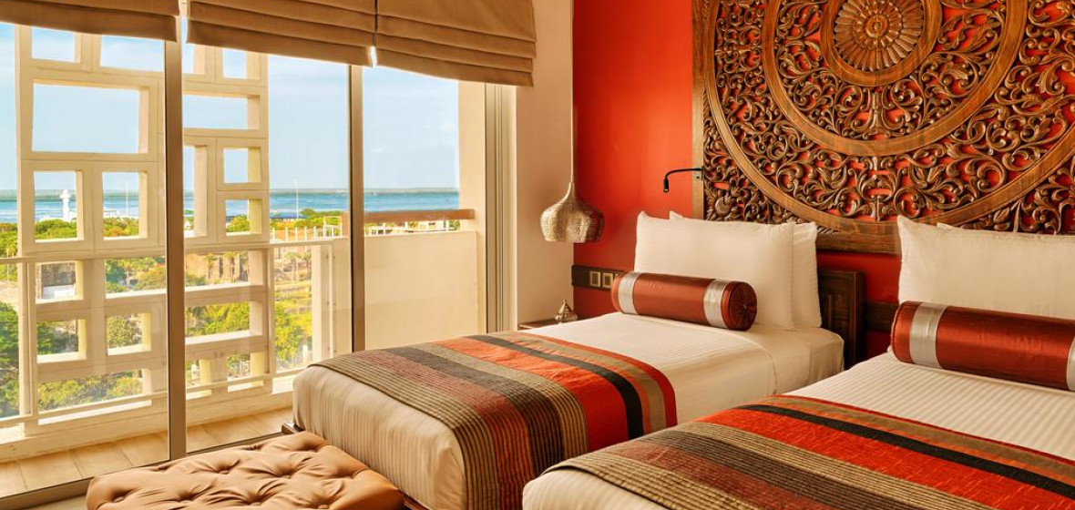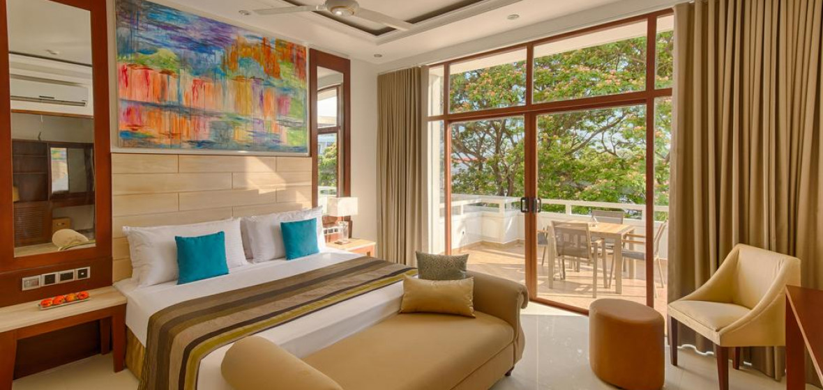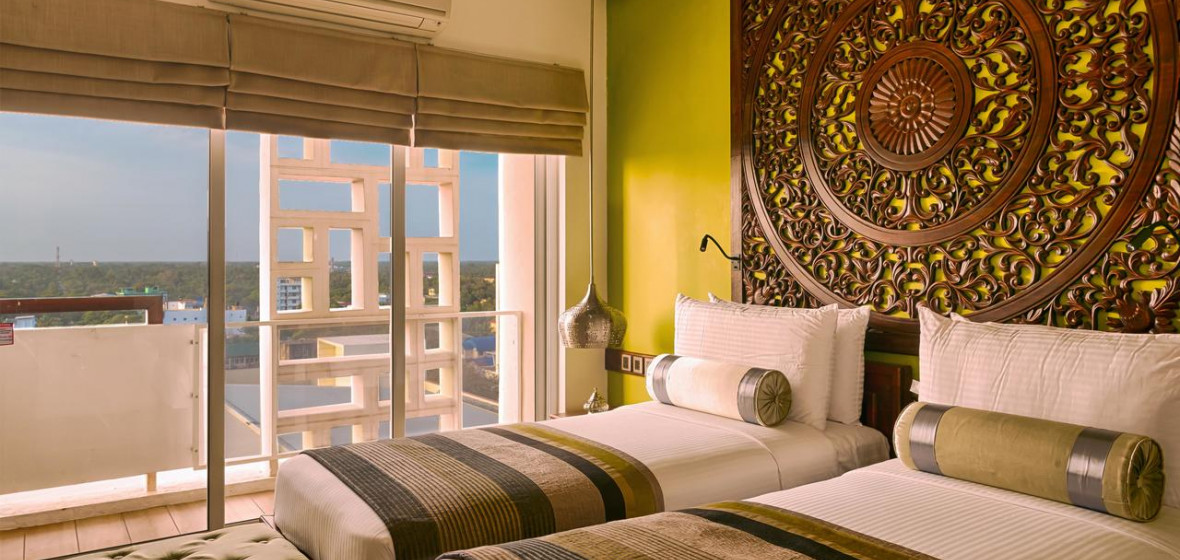 Contemporary style characterises this spot, with traditional touches — such as wooden latticework and a red-and-gold template — thrown in too. Rooms are compact and comfortable, with smart bathrooms and big cosy beds. Many also open onto small private balconies, offering views of white-painted buildings dotted amidst the palm trees or wonderful vistas over the turquoise lagoon. A brilliant location allows visitors to walk or pedal to striking nearby sights, from the iconic Jaffna Public Library to the Dutch and Portuguese-era Fort and more. Savour spiced Northern Sri Lankan specialities at the restaurant, or perch at the rooftop bar for scenic city panoramas — this is, after all, one of Jaffna’s tallest buildings.