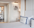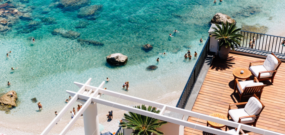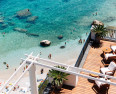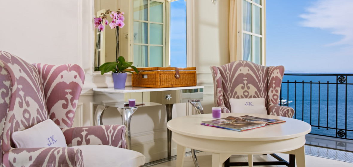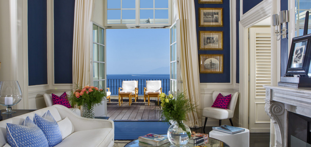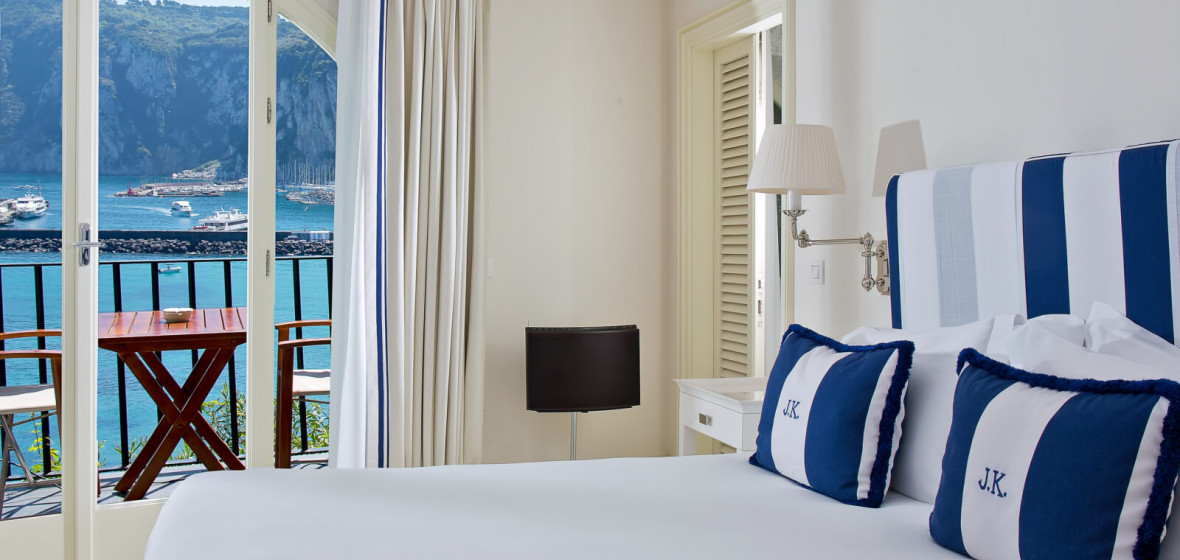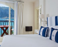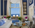 An essay in maritime chic, JK Place has an effortless elegance to it. Public areas have the feel of an aristocratic and well-kept private home with doors flung open to embrace the beauty of the sea on your doorstep. Situated just above the harbour, its proximity to the sea is great for views but less so for those keen to explore the island’s cultural treasures or tempting boutiques. The 22 rooms and suites are luxurious, stylish and comfortable. The large heated swimming pool has ample sunbathing areas and the restaurant, serving delicious local cuisine has an unbeatable view from its terrace. This is a hotel for those who are happy to ensconce themselves under the watchful eye of the smiling staff and stay put.