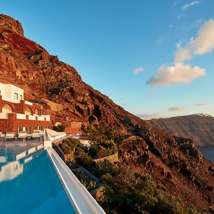 Cet hôtel a quelque chose de très cool. Ses chambres et suites caverneuses (14 et 5 d'entre elles) sont toutes de couleur crème avec beaucoup de matériaux naturels, toutes avec des terrasses privées et certaines avec des jacuzzis privés. C'est un lieu divertissant et inhabituel, tout en conservant le chic bleu-blanc classique de Santorin qui caractérise la région. Des vues de rêve s'offrent à vous, y compris depuis l'excellent bar à vin et le restaurant. Tout cela est très romantique, mais les enfants sont également les bienvenus.