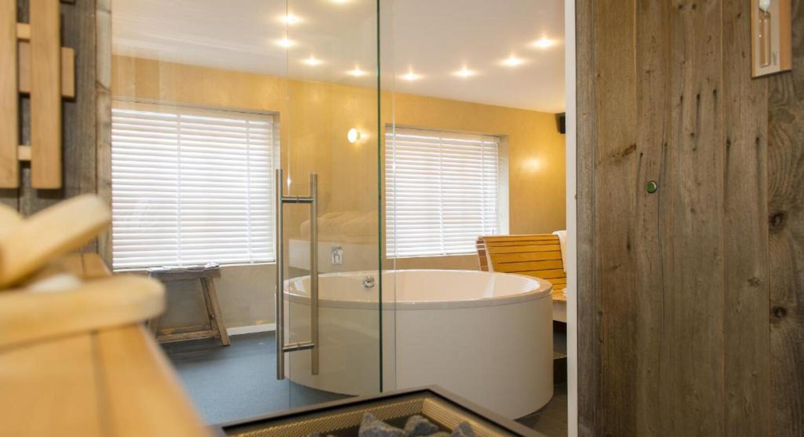 Petit espace de bien-être proposant un bain à remous, un sauna et des forfaits spa.Location de vélos