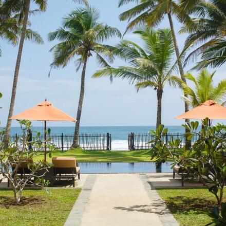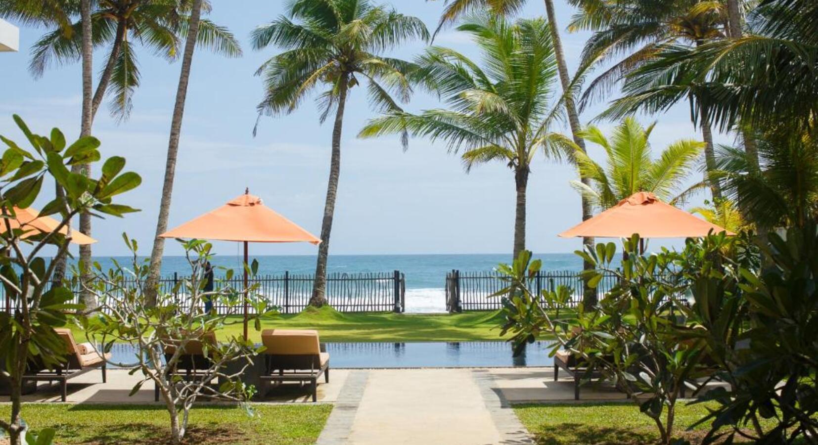 Enjoy Sri Lankan and Western specialities in the sea-facing restaurantBar