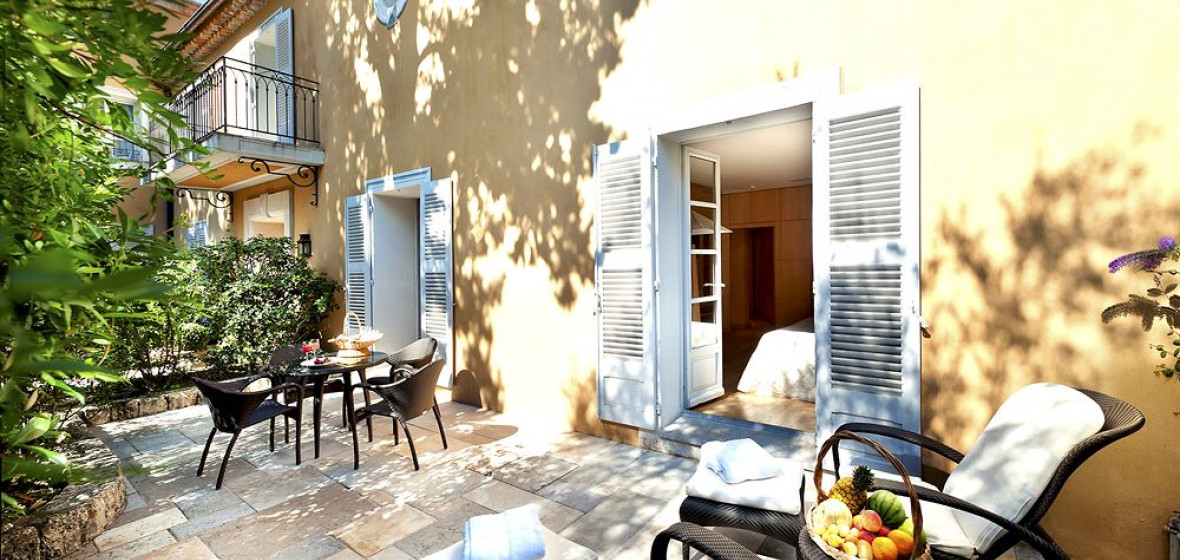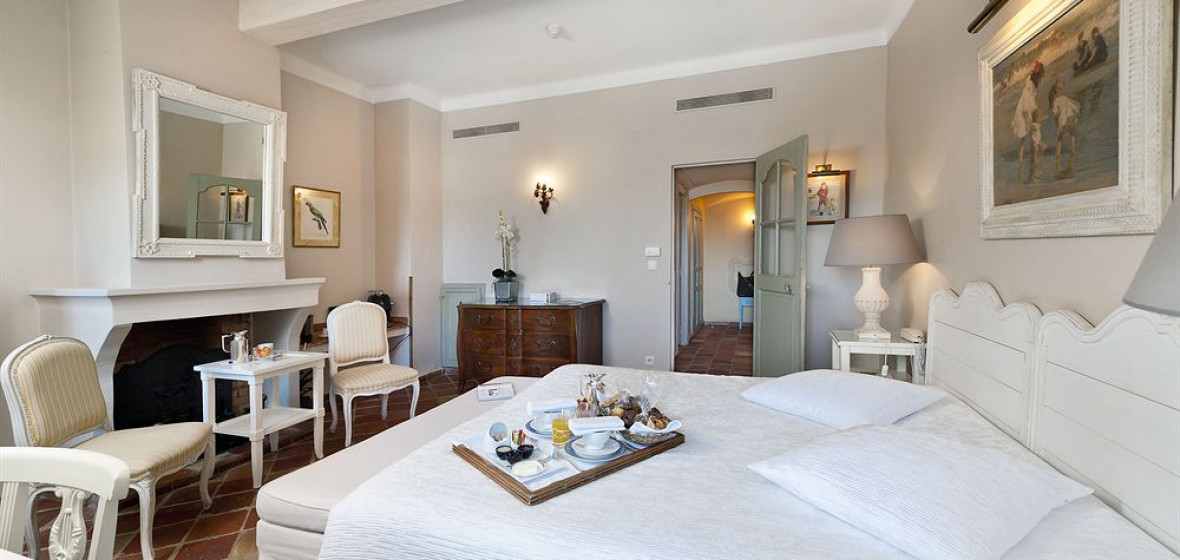 Das blau verkleidete Herrenhaus des berühmten Chefkochs Jacques Chibois liegt in einem alten Olivenhain und ist mit lila Bougainvillea, Rasen, einem großen Pool, alten Steinmauern und schattigen Gängen ausgestattet. Die achtzehn luxuriösen Zimmer, entweder modern oder traditionell eingerichtet, haben Terrassen oder Balkone, und das Essen, das im Speisesaal oder auf der schönen Terrasse eingenommen wird, ist hervorragend. Ein besonderer Genuss.