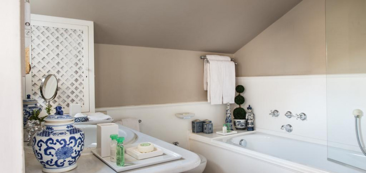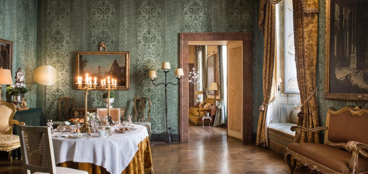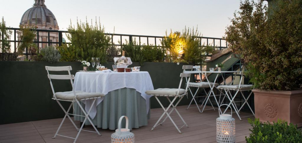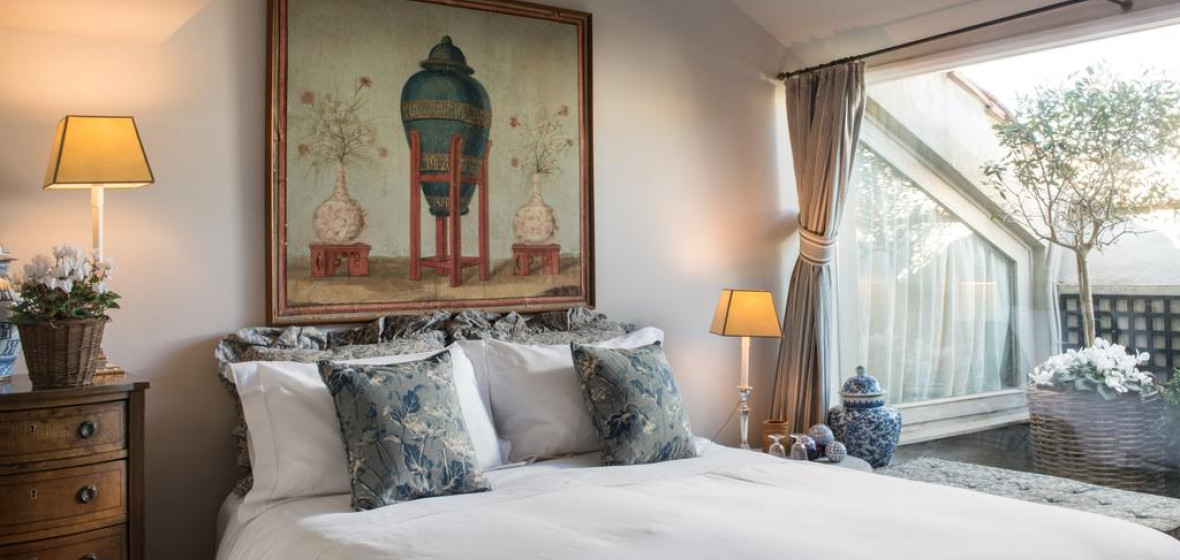 La Residenza takes you into a bygone era, one of Italian nobility and Baroque romance. Just two enormous suites, one has a connecting room (The Blue Room) for children, have kitchenettes, dressing rooms, private terraces, marble bathrooms, and sitting rooms. Both are bedecked to the hilt with magnificent oil paintings, canopied beds, rich fabrics, and everything else you might expect to see in the home of royalty. The apartments are owned by Princess Letizia Ruspoli, descendant of Napoleon III.
