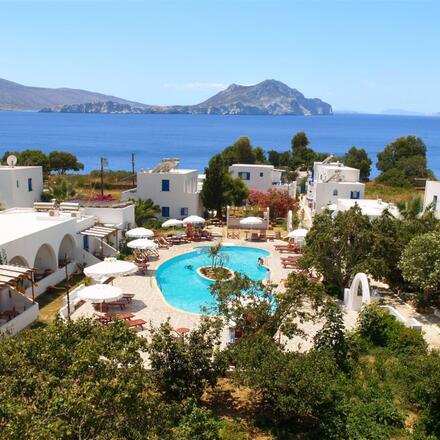 Einfach einer der besten Orte in Griechenland. Nikki Gavalas (die griechischen Charme mit New Yorker Köpfchen verbindet) ist die Königin über ihre oasenartige Ansammlung von Bungalows und Apartments an einer langen, sandigen Bucht. Das Wasser ist seicht und ruhig, also ideal für kleine Kinder. Ein- und zweistöckige kykladische Bungalows mit blauem Holz und weiß gestrichenen Wänden umgeben einen Pool und einen blumenübersäten Garten. Die hauseigene Taverne des Lakki ist von morgens bis abends geöffnet und serviert typische Gerichte aus lokalen Produkten.
