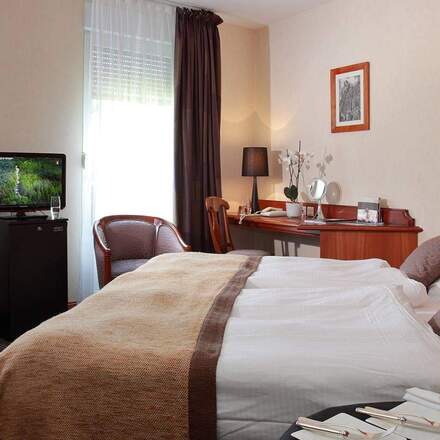Warum übernachten die Gäste gerne in unserem Hotel? Das liegt an unserem Restaurant, der Lage und der Atmosphäre. In der Umgebung gibt es viele Aktivitäten, da wir uns in der Mitte der Elsässer Weinstraße befinden. Sie können zahlreiche Weinproben machen und die nahe gelegenen Städte besuchen. Obernai ist nur 4 km entfernt, Straßburg 30 km und Colmar 40 km. Welches Frühstück bieten wir an? Wir haben ein reichhaltiges Frühstücksbuffet für 16 € pro Person und Tag oder ein Express-Frühstück mit einem Heißgetränk und einer Viennoiserie für 7 € pro Person und Tag. Bieten wir auch andere Mahlzeiten an? Ja, wir haben ein Restaurant mit 3 Menüs und Gerichten zwischen 13 € und 30 €. In Ottrott gibt es auch viele andere Restaurants zur Auswahl, egal ob gastronomisch oder traditionell. Unsere beliebtesten Zimmertypen sind die charmanten Zimmer. Wir haben zwei Zimmer unter dem Dachvorsprung und zwei Zimmer im ersten Stock. Sie zeichnen sich durch ihren Charme, Gemütlichkeit und Komfort aus. Welche Einrichtungen haben wir für Kinder? Unsere Zimmer sind für eine oder zwei Personen ausgelegt, aber für Familien haben wir 2 Suiten und ein Apartment im L'Ami Fritz sowie eine Suite und ein Apartment in La Maison de Sophie. Welche Botschaft möchten wir den Lesern von Hotel Guru mitgeben? Kommen Sie ins Elsass, besuchen Sie Ottrott und entdecken Sie unser Haus L'Ami Fritz. Erleben Sie unsere 22 Zimmer, unseren holzgetäfelten Speisesaal im Renaissancestil und unsere Kaminstube mit mittelalterlicher Atmosphäre. Im Sommer können Sie im Schatten unserer jahrhundertealten Platanen speisen.