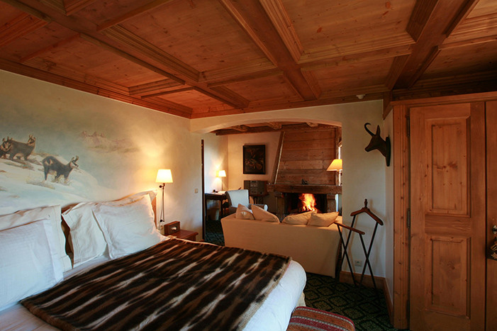 “A spectacular Five Star hotel set across three separate chalets. Typical Savoyard architecture and sumptuous furnishings in the rooms and suites. Fireplaces, wall murals, polished wooden floors, private hot tubs, and terraces. Gourmet cuisine and a professional spa. Very luxurious. ”