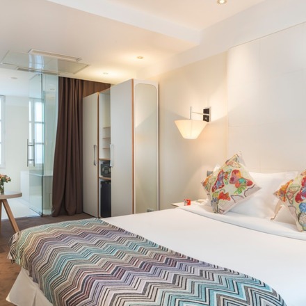 "Designer Bruno Borrione certainly knows how to pretty up a hotel room. Add a chic address in Saint-Germain, and you've got the perfect place to base a whirlwind city break."