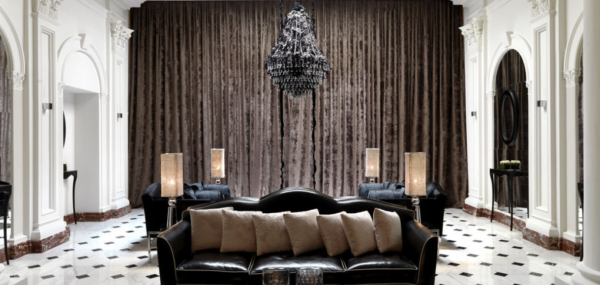 "The 56 rooms are slightly more understated, but with modern touches like floor-to-ceiling mirrors and black-lacquered furniture. Don't miss the bar downstairs, which glitters like a disco ball and features eel-skin seats. The genius of the hotel? Somehow, it all feels quirky, not corny."