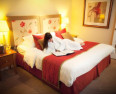 Reception rooms have retained their original grandeur with plasterwork ceilings, vast fireplaces and huge shuttered windows but have been skilfully brought into the 21st century with bold colour schemes: rich gold, red and blue upholstery in the bar (carefully matched to the decorative ceiling), deep shades of green in the bookcase-lined Emerald restaurant (the former library) and the softest baby blues in the drawing room where afternoon tea is delicately served. And then there’s the double-height hall with oak panelling and staircase, starry ceiling and stained-glass window – and where guests are greeted with a rum punch.