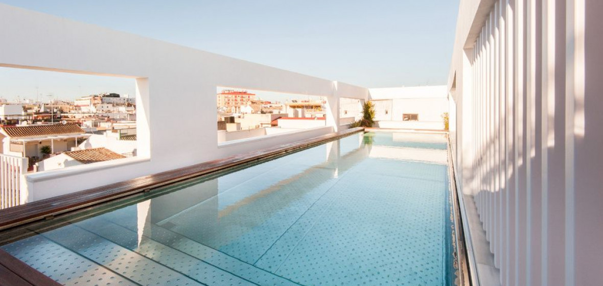 "This temple to contemporary design in a restored 19th-century palace, only Seville’s second five-star Grand Luxe hotel, follows the Mercer Barcelona in offering an impressive, nicely-located historic space with sharply-styled interiors and cutting-edge comforts, plus a rooftop terrace with pool and bar."