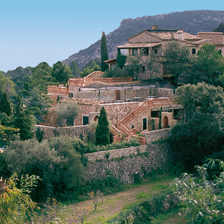 An den Berghang geschmiegt, mit Blick auf das altertümliche Dorf Valldemossa und inmitten gepflegter Gärten, befindet sich diese charmante Finca, die einst eine Olivenfarm war, seit fünf Generationen im Besitz der gleichen Familie. Sie wurde 2002 vom jetzigen Besitzer Ignacio Ozonas in ein kleines Hotel umgewandelt, das sich durch seine schlichte Eleganz auszeichnet. Die Zimmer sind mit Steinwänden oder weiß gestrichenen Wänden, einfachen Matten auf terrakottafarbenen Fliesenböden, cremefarbenen Leinenmöbeln und antiken Holzmöbeln ausgestattet. Die Atmosphäre ist entspannt - die Gäste können sich an der Bar bedienen, den Laptop des Hotels nutzen oder sich eine der DVDs ausleihen. Das gesunde, schmackhafte Essen wird in einem gemütlichen Speisesaal mit einer alten Olivenpresse serviert, und das Frühstück besteht aus einer köstlichen Auswahl an Buffetangeboten. Ein wirklich besonderer Ort, dessen Anziehungskraft zweifellos zum Teil dem Manager Antonio zu verdanken ist, einem himmlischen Gastgeber, dessen Persönlichkeit dem Ganzen ein besonderes Flair verleiht.