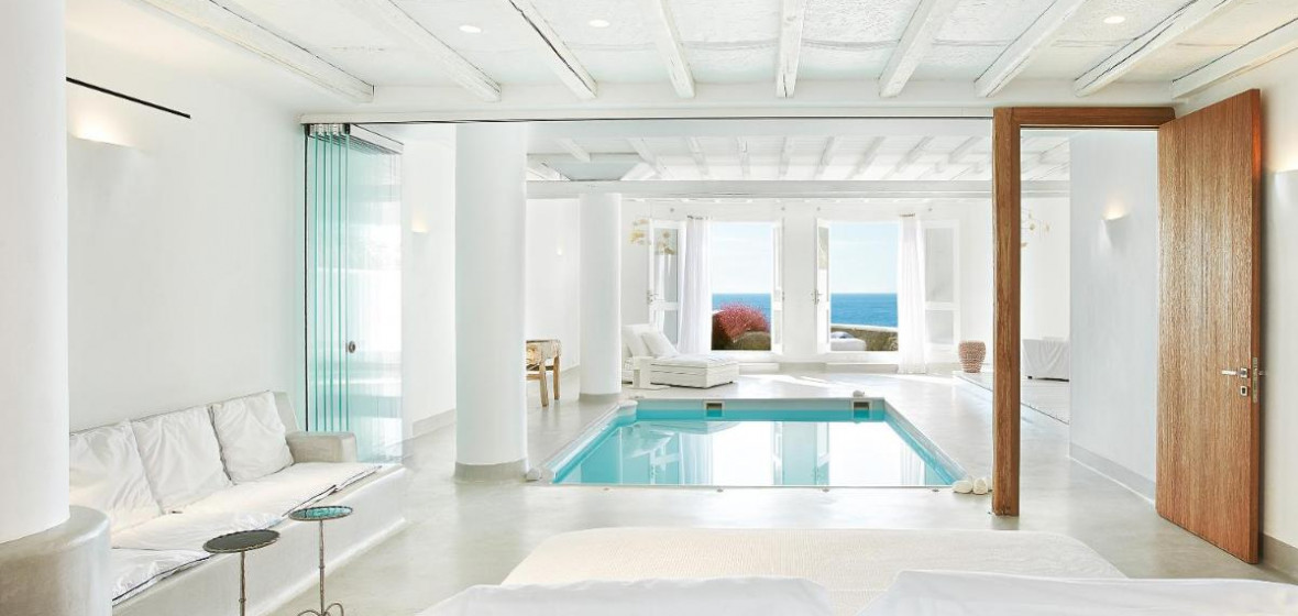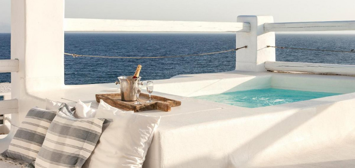The luxury Grecotel group’s Mykonos flagship is the definitive dream in blue and white. Much imitated, but still the island’s major contender, Mykonos Blu blends style with resort professionalism, with 111 bunglaows, suites and villas – many with private pools and mini-gardens – a huge infinity seawater pool, and an ‘eclectic library lounge’ with WiFi. The bright lights of Chora are just a ten-minute taxi ride away, and when you return, Mykonos Blu’s ‘Long Hours’ cocktail bar will still be waiting for one last nightcap....