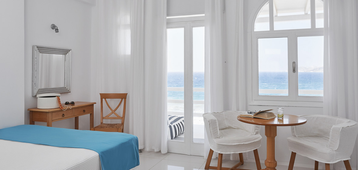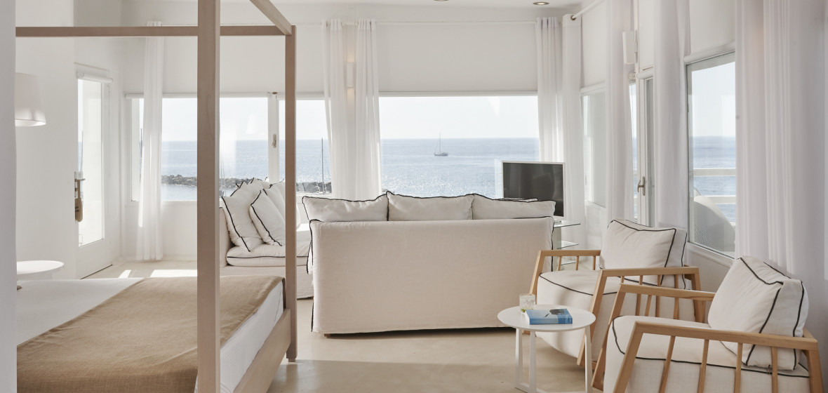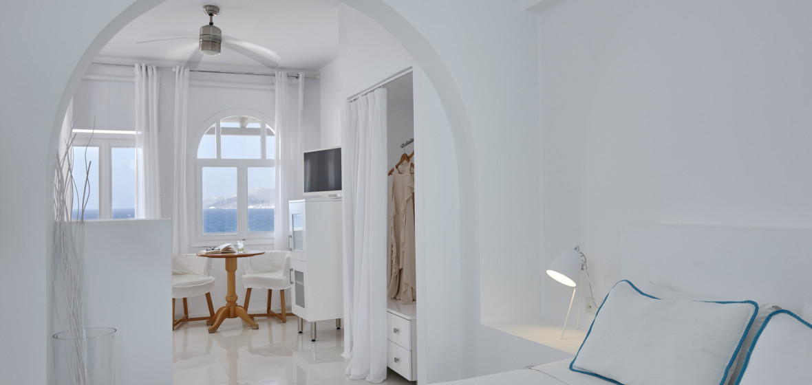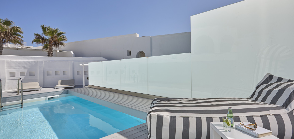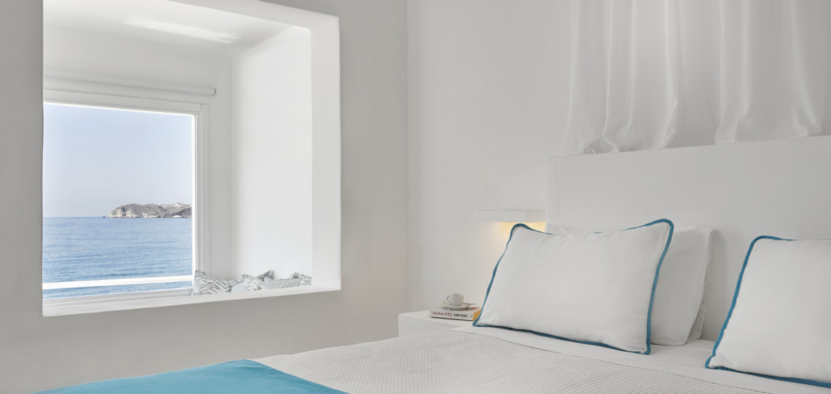 • A wildy romantic setting with secluded rooms, private terraces overlooking the Aegean Sea and poolside cocktail bar.