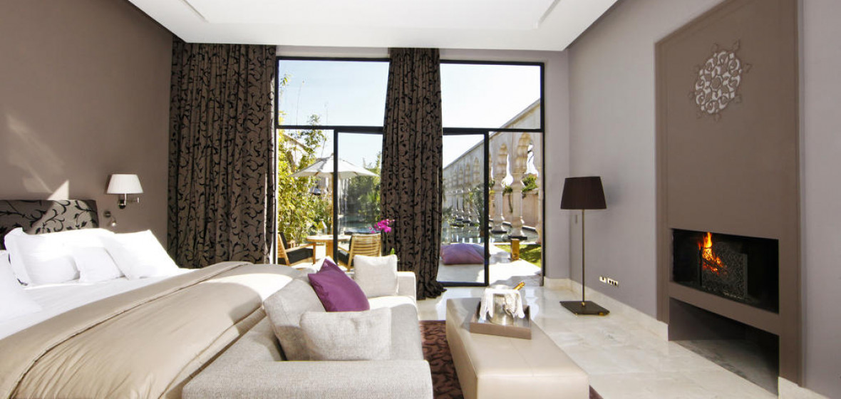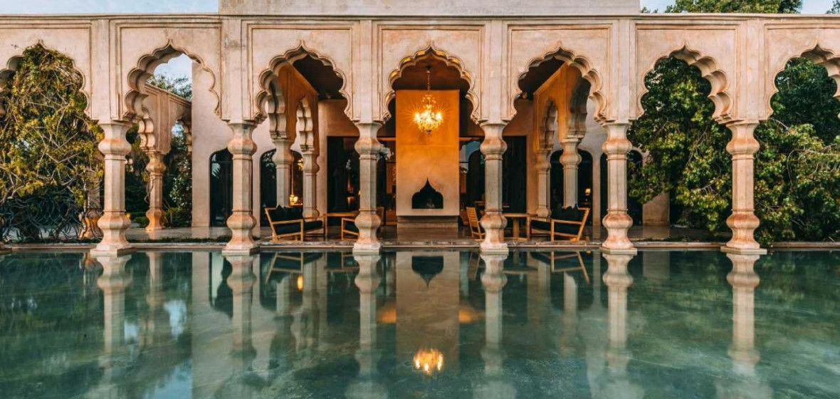 Palais Namaskar, offers soothing rooms and a rooftop bar with fabulous views of the Atlas mountains. Located at The Palmeraie oasis, it’s just a 20-minute drive from the souks of central Marrakech. The rooms are far more spacious than in town, with walls of glass opening on to ornamental pools.