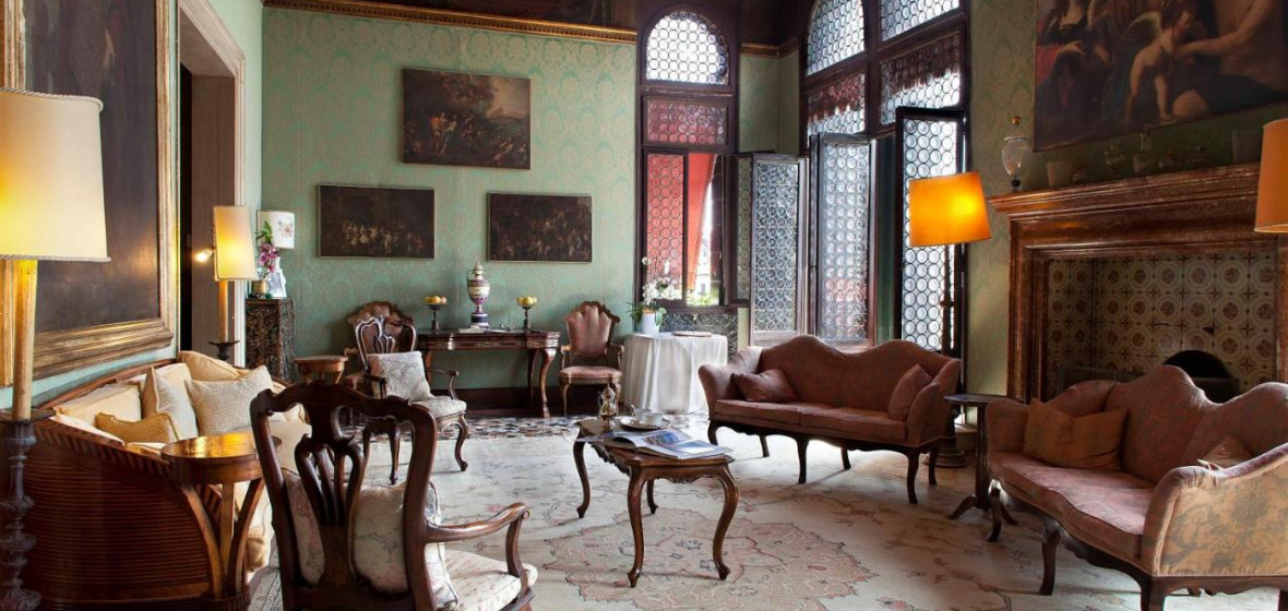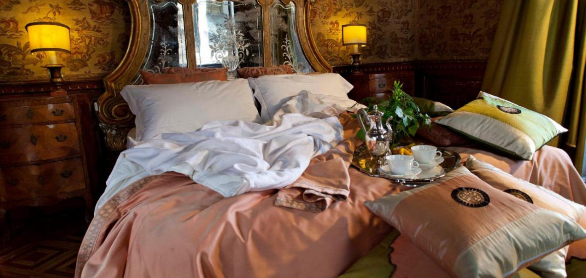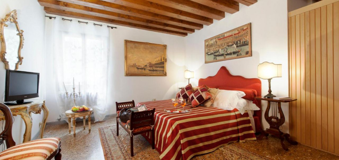 Tucked away down a maze of passages between San Stefano Square and the Accademia, ten minutes from St. Mark’s Square, Palazzetto Pisani comprises 26 fine and individual bedrooms spread over two buildings and, on the second floor, large, lofty and elegant rooms in which to relax or enjoy a magnificent breakfast or dinner. A private dwelling until ten years ago, the Palazzetto retains a delightfully warm, beautiful, and slightly paint-worn air that is matched by the glory of its situation. The best rooms face south onto the Grand Canal. The spacious Pisani suite on the ground floor is especially attractive. Four windows open onto the water and from the balconies, which have been known to be inundated by an excessively high tide, one can sit in the sun and gaze at boats travelling to and from St. Mark’s.