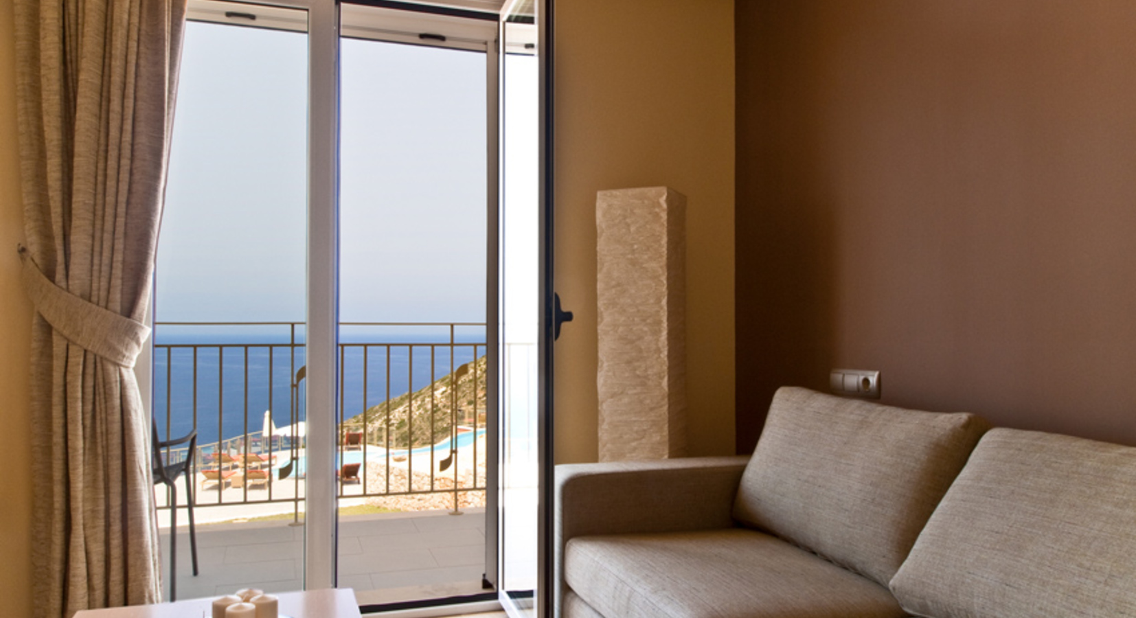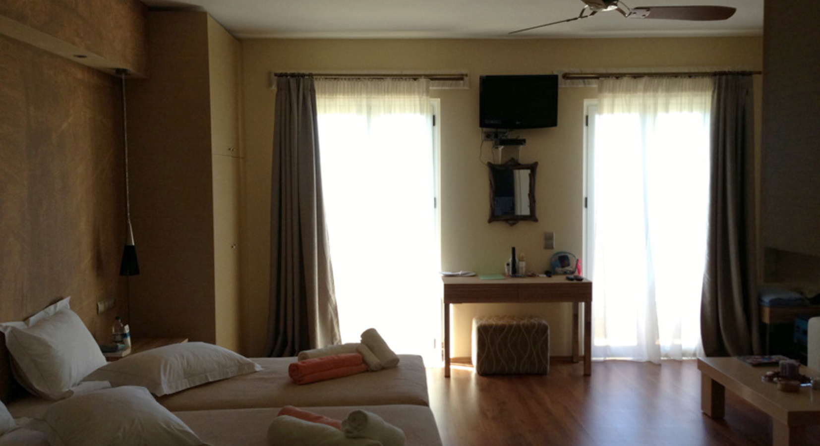 Pourquoi les gens aiment-ils séjourner dans votre hôtel ? En raison de l'attitude hospitalière, du caractère unique et de la sérénité de l'environnement, ainsi que de la vue magnifique et des couchers de soleil sur la baie de Petani et la mer Ionienne.