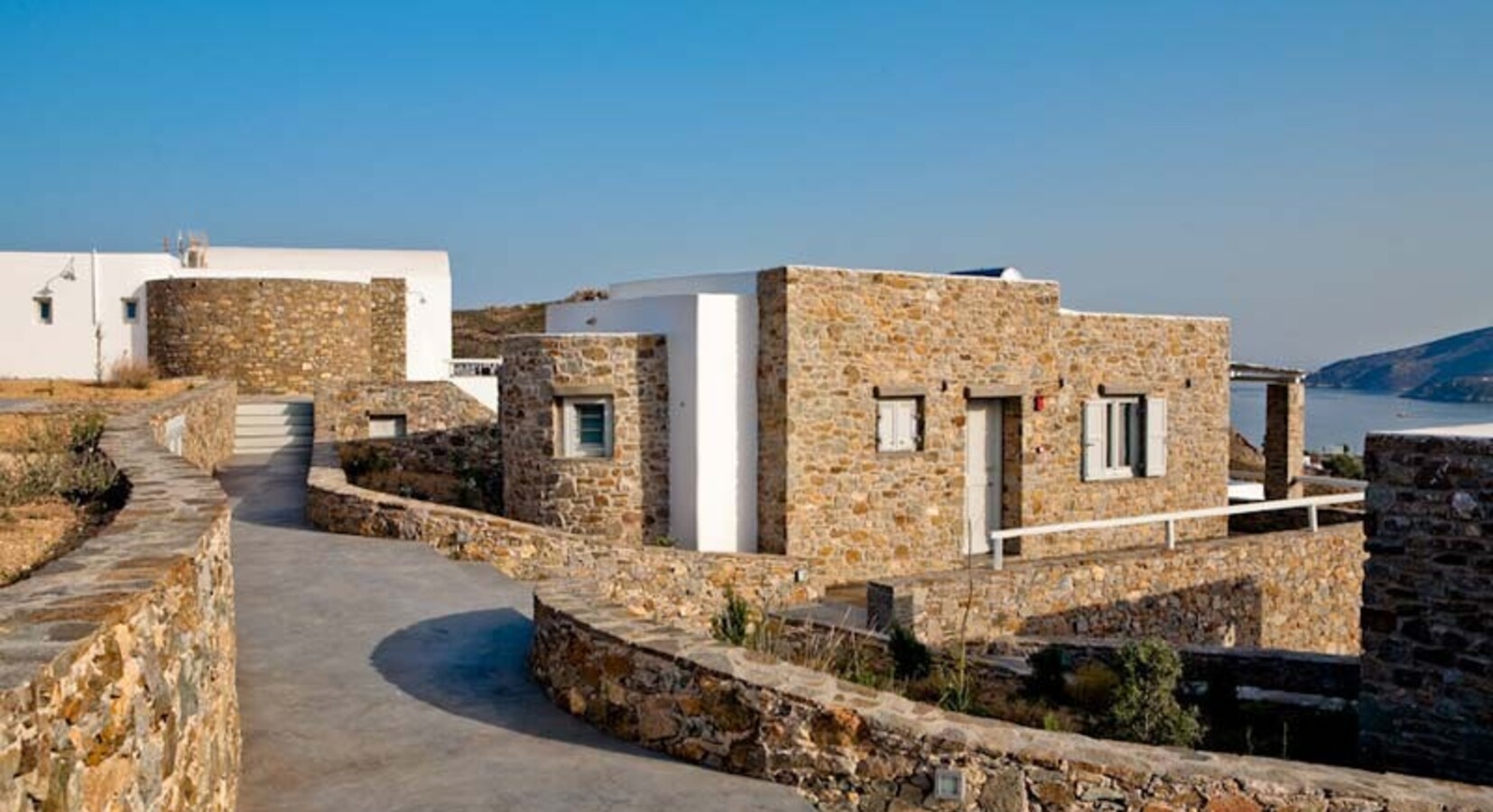 “Private villa resort in the hills. Each contemporary apartment has rustic brick walls, white furnishings, stone floors and modern kitchens. Suites have private pools and terraces. Outdoor pool and sun decks. Superb fresh Greek cuisine, relaxed bar. Friendly, private and idyllic. ”