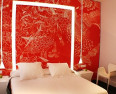 “Ein modernes Hotel mit innovativem Design im Zentrum von Madrid. Kräftige Farben prallen von den weiß gestrichenen Wänden ab und erzeugen einen illusionistischen Effekt. Nur wenige Minuten vom Opernhaus und dem Königspalast entfernt. Ein junges und angesagtes Ziel.”