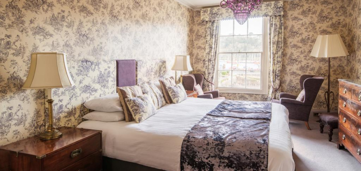 With its crenelated white façade, illustrious history and prominent position on the waterfront, the Royal Castle is one of Dartmouth’s most iconic buildings. Its 25 traditionally decorated rooms are comfortable and stylish, and views from the river-facing rooms are exceptional.