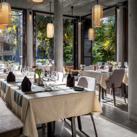 For tourists seeking an authentic taste of Cambodia, Sala Lodges offers a glimpse into rural life but with the amenities of a luxury hotel. Eleven traditional Khmer houses, dating back from 1956 - 1985, sit on stilts in the midst of lush foliage, each one sourced by the hotel’s Swiss owners, transported to the hotel grounds and then reassembled to form a charming village compound. Expect stylish simplicity that emphasizes local furnishings and stripped wood, plus roomy bathrooms and wraparound porches. In contrast, the sleek, open-air restaurant boasts concrete flooring, modern design and a menu offering Cambodian cuisine. Snacks and tapas, Western and Cambodian are available in the Lounge or through room service. At the far end of the property, a saltwater pool provides welcome respite from the heat. Early morning temple-goers can request takeaway breakfast goodies, which are thoughtfully packed in a wicker picnic hamper.