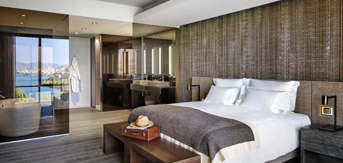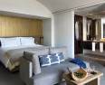 "The 57 spacious guest rooms have inviting textures, subtly screened off bathrooms in gray Portuguese limestone, daybeds in place of work desks, private terraces and wide expanses of window."