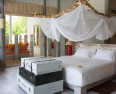 Das Resort bietet eine entspannte, ungezwungene Herangehensweise an den Fünf-Sterne-Luxus; jede der rustikal-schicken Villen ist vollgepackt mit Komfort, wobei darauf geachtet wurde, dass das Resort umweltfreundlich ist. Jede Villa verfügt über ein Freiluft-Badezimmer in einem privaten Garten, der zu einem eigenen Strandabschnitt führt. Speisen Sie in einem Baumkronen- oder Gartenrestaurant, genießen Sie die herrlichen Sonnenuntergänge von der Champagnerbar aus und entspannen Sie sich bei einem Film unter dem Sternenhimmel im Freiluftkino. Einfacher Luxus in seiner besten Form.