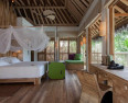 The resort offers a relaxed, unbuttoned approach to five star luxury; each of its rustic-chic villas are loaded with comforts, though care has been taken to make the resort environmentally friendly. Each villa has an open-air bathroom set in private gardens and leading onto a personal stretch of beach. Dine in a treetop or garden restaurant, enjoy the glorious sunsets from the champagne bar and relax and watch a movie under the stars in the outdoor cinema. Barefoot luxury at its best.