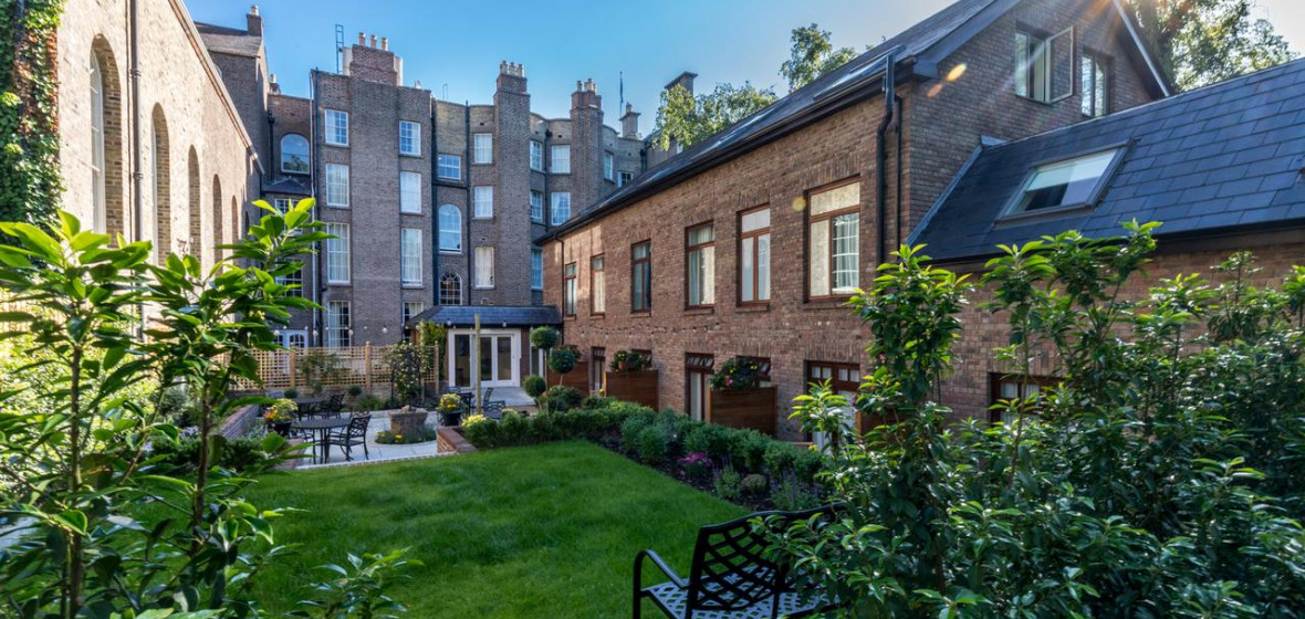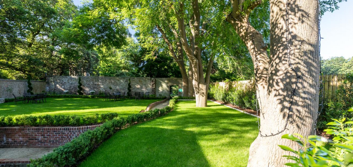 Charmanter Garten auf der Rückseite des Anwesens mit Terrasse und RasenKein Restaurant