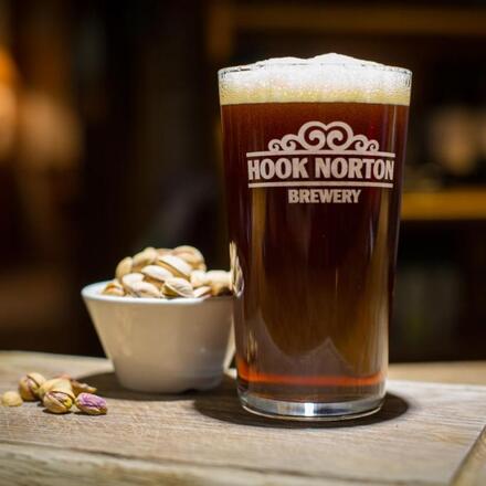 Das Lokal ist mit der örtlichen Brauerei Hook Norton verbundenKinderfreundlich