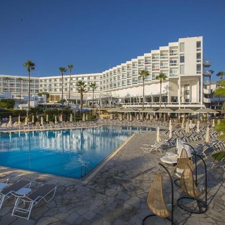 Much loved by Brits and within walking distance of Paphos harbour and the resort's Roman mosaics, the common areas of this 1980s-vintage Cypriot hotel sport a retro, colonial style, set off by lush, tropical gardens. Many rooms have sea views and terraces, some have private plunge pools. Breakfasts are excellent.