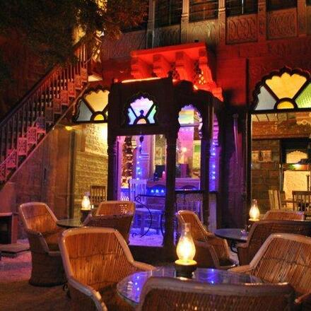 Cette maison d'hôtes charmante et originale est une tranche de vie de Jodhpur à ne pas manquer. En pénétrant dans une rue étroite, on est immédiatement accueilli par Umaid, son fils Manish et leur famille élargie. Cette haveli vieille de 500 ans appartient à cette famille jaïn depuis des générations et est gérée comme une maison d'hôtes depuis 1968. L'ambiance y est extrêmement détendue et conviviale. Des escaliers en marbre et des murs d'un bleu froid vous emmènent d'un étage à l'autre, jusqu'à ce que vous atteigniez des toits-terrasses carrelés et ombragés au sommet, avec une vue ininterrompue sur l'imposant fort Mehrangarh et sur l'horizon de la ville. L'animation de la vieille ville de Jodhpur se trouve juste à l'extérieur ; une courte promenade dans les rues, en évitant les motos, les vaches errantes et les chiens errants, vous mènera au marché de Sardar avec sa tour d'horloge emblématique, une émeute quotidienne de couleurs et de vitalité. Les 15 chambres sont toutes différentes et leur prix varie pour convenir à tous les budgets. Certaines sont ornées de vieilles pierres, d'autres de peintures murales représentant des mythes et des légendes indiennes ; toutes disposent d'une bonne salle de bains avec douche. L'hôtel n'a pas d'ascenseur, mais l'ascension du dernier étage constitue un bon exercice et en vaut la peine ! La nourriture, servie sur le toit-terrasse, est végétarienne et simple mais saine.